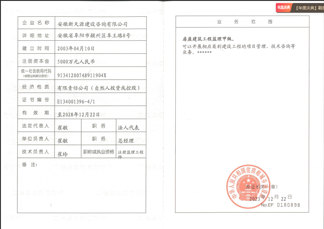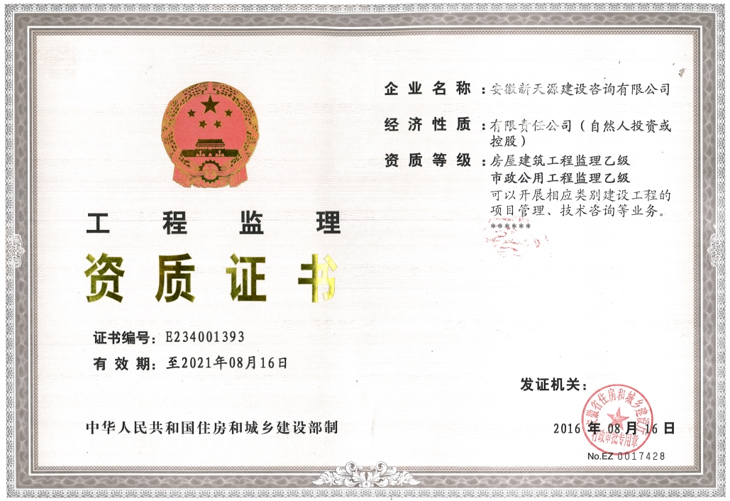 2014年1月取得工程監(jiān)理資質(zhì)證書;現(xiàn)工程招標(biāo)代理及工程造價(jià)已取得甲級資質(zhì),并開展了環(huán)境影響評價(jià)、工程測量、房地產(chǎn)評估等業(yè)務(wù)。